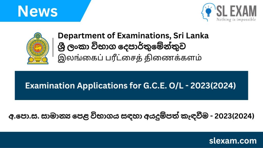 The Department of Examinations has announced the submission of applications for the GCE O/L Exam 2023 (2024)